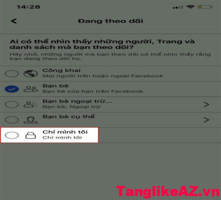 - Bước 5: Nhấn vào Chỉ mình tôi .