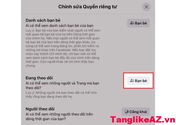 Để ngăn hoạt động của bạn bè xuất hiện trên News Feed. Chỉ cần chọn đối tượng trong phần Ai có thể xem danh sách bạn bè của bạn. Sau đó chọn Chỉ mình tôi.