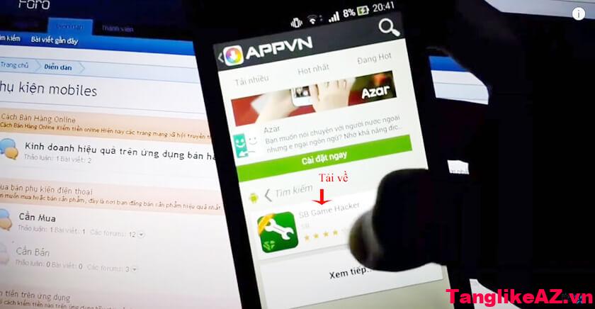 Truy cập kho ứng dụng APPVN, tìm kiếm và tải về phần mềm SB Game Hacker.