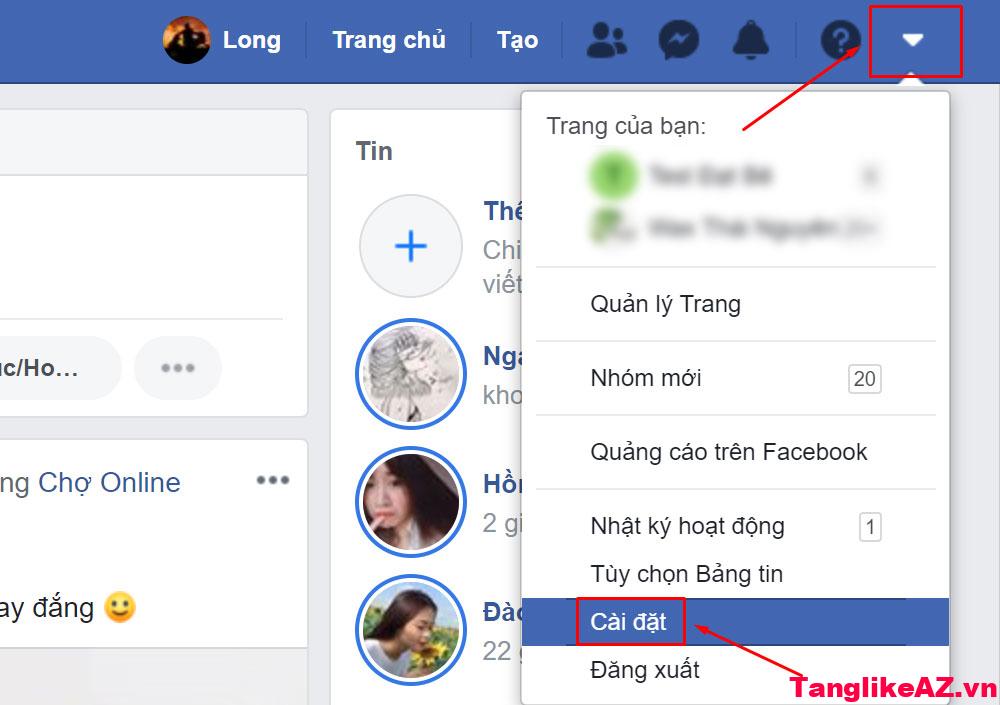 - Bước 1: Chọn Tài khoản (biểu tượng tam giác ngược).