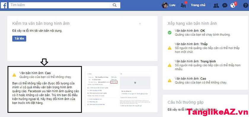 - Check Facebook text < 20%: quảng cáo sẽ hiển thị tốt