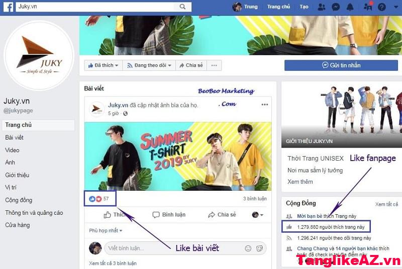 Một lượt thích trang bao gồm việc thích một trang thông tin nhất định. Like page cũng có thể hiểu là like một fan page trên mạng xã hội Facebook chẳng hạn. Là hoạt động là một trong những hoạt động thể hiện sự tương tác, trao đổi trên Facebook – trang mạng xã hội được nhiều người tin tưởng.