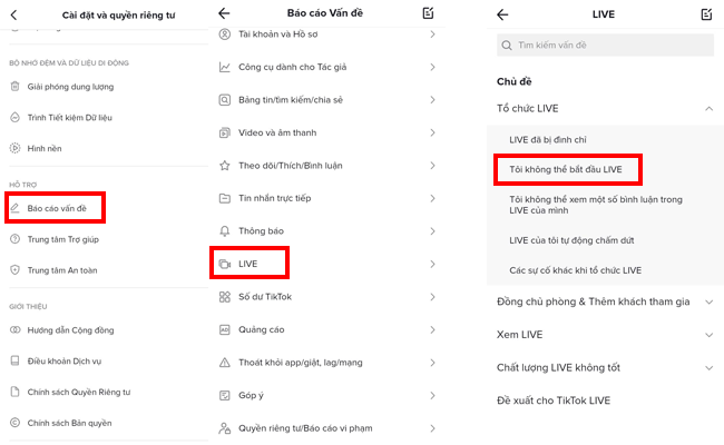 - Bước 3: Bấm vào Tôi không thể bắt đầu phát sóng live (Tôi không thể bắt đầu phát sóng live).