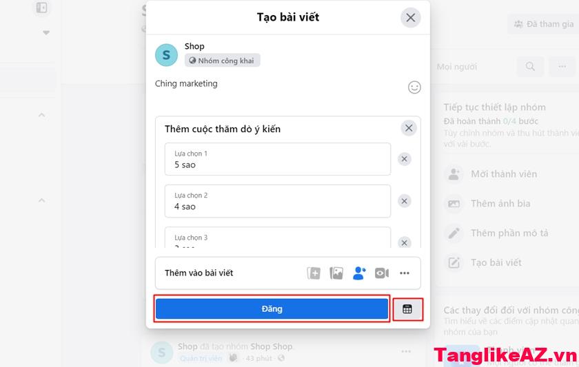 – Chia sẻ: Nhấn vào Chia sẻ ngay là bạn đã tạo thành công câu hỏi thăm dò ý kiến trên Facebook .