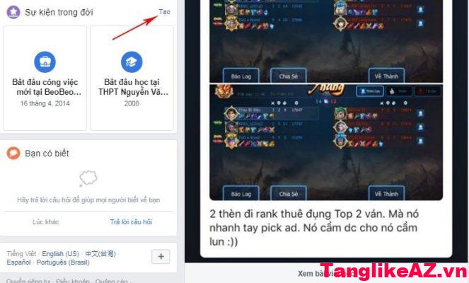 - Bước 2: Kéo xuống và chọn Tạo sự kiện trong đời.