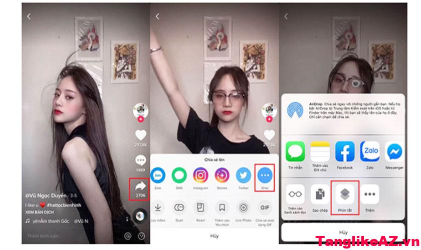 Sau đó, chọn biểu tượng mũi tên để chia sẻ => Chọn Khác => Chọn Phím tắt.